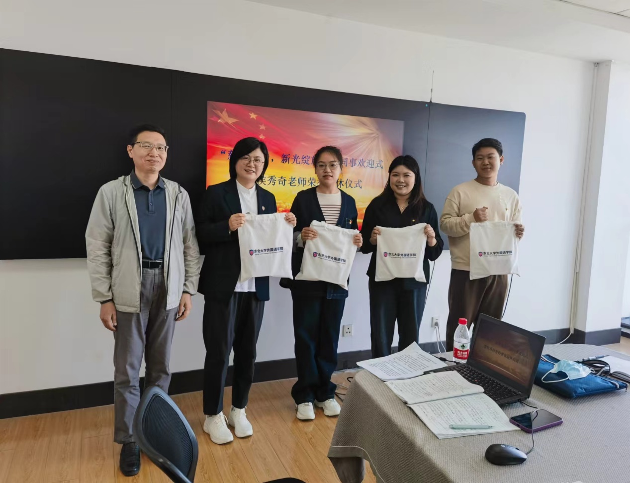 随后,进行迎新环节。4位新入职的教职工集体上台,依次进行了自我介绍并表达了对未来工作的憧憬和信心。爱游戏体育 党委副书记、副院长严志刚,副院长何鑫,党委委员、大学英语教研一部主任马新分别为新入职教职工佩戴党员徽章、院徽,颁发爱游戏体育 纪念品。